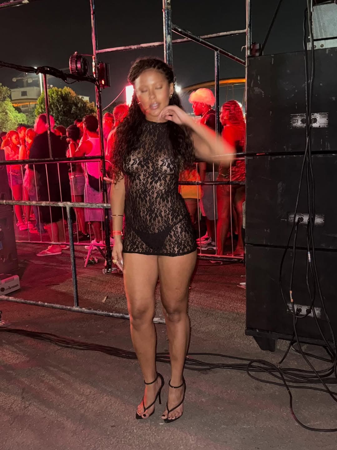 A atriz Bella Campos, de 27 anos, chamou a atenção ao aparecer usando um vestido curto e transparente durante a festa Batekoo, movimento cultural original de Salvador, que teve edição especial realizada em Botafogo, no Rio de Janeiro, na noite deste sábado (27). Os registros foram compartilhados nas redes sociais da artista.