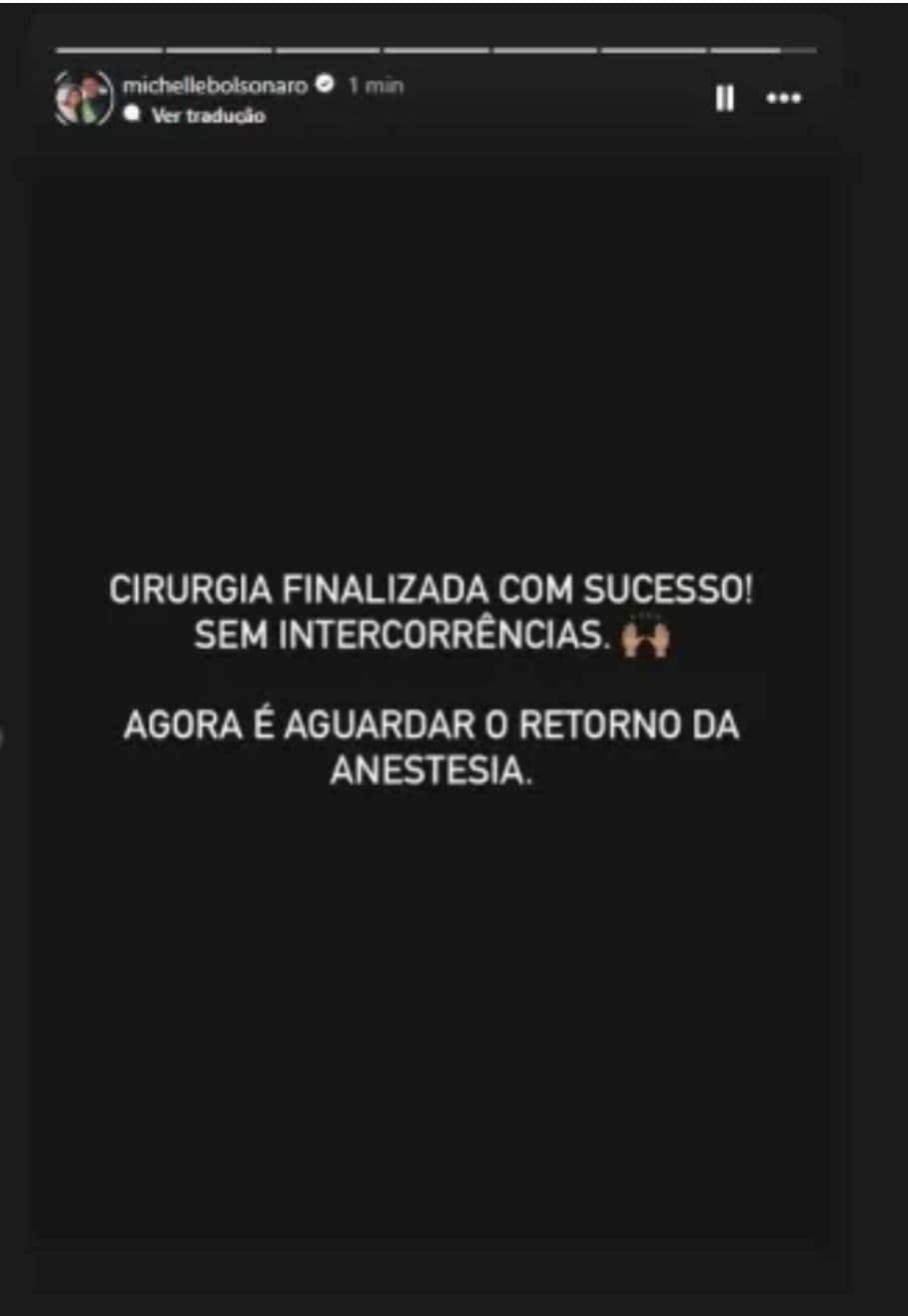 Michelle publicou nos stories do Instagram: “Cirurgia finalizada com sucesso! Sem intercorrências. Agora é aguardar o retorno da anestesia”.