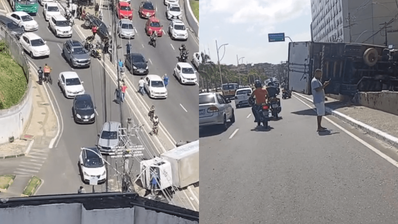 Acidente entre caminhão e carro assusta motoristas na Vasco da Gama
