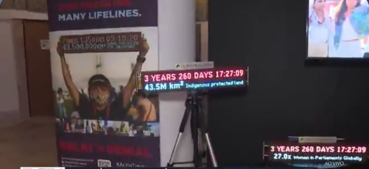 Relógio do clima marca contagem para colapso ambiental em evento em Salvador